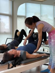 Today, Om Space Bodylab is powered by a team of 12 dedicated instructors, offering Yoga, Pilates Mat, Pilates Equipment, Gyrotonic®️, Aerial, in the form of group classes, private sessions, and personalized equipment training.