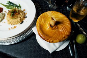 Rich, aromatic, and slow-cooked to perfection  this Kuzi was hidden beneath a layer of flaky puff pastry, creating a dramatic reveal. Served with potatoes and carrots in a beautifully spiced curry.